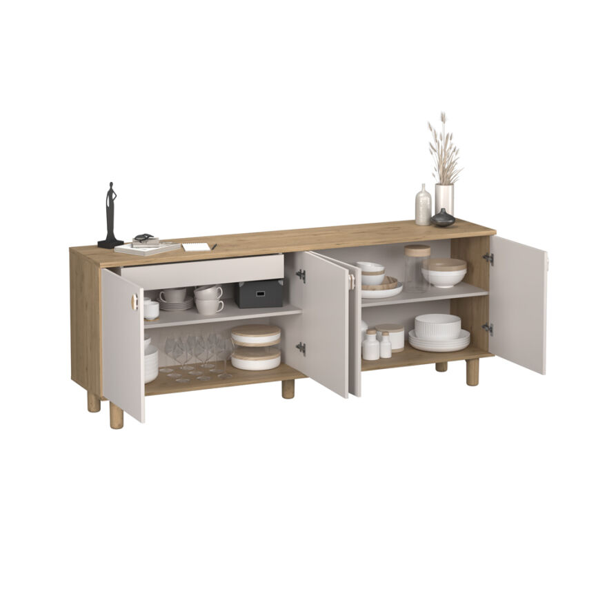 Bohem 4 Kapaklı İç Çekmeceli Konsol - Florida Meşe/Vizon 207x79x45 cm