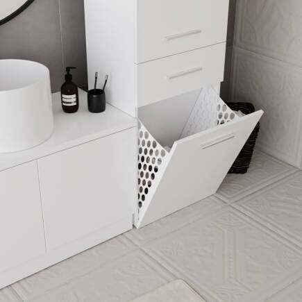 Diamond Çamaşır Sepetli Kapaklı ve Çekmeceli Çok Amaçlı Dolap - Parlak Lake Beyaz 52x187x38 cm